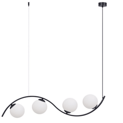 Lampa wisząca podłużna czarna 4 punktowa kule 5014 WAVE 4 BIG