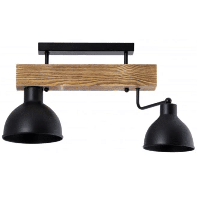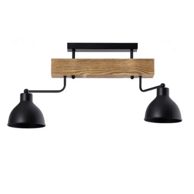 Lampa sufitowa czarna 2 punktowa drewniana W-DR 1233/2