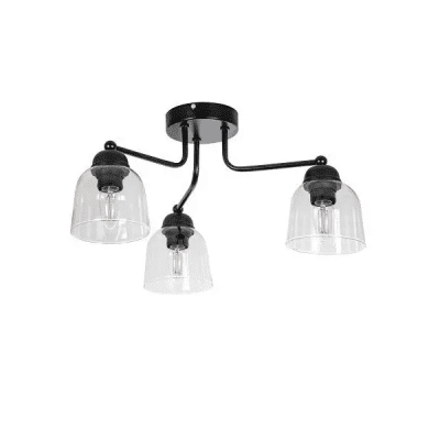Lampa przysufitowa 3 ramienna czarna klosz szklany kielich W-1223-3