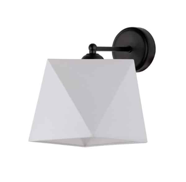 Konstrukcja metalowa w kolorze czarnym. Na ramieniu zamontowany abażur w kolorze białym.