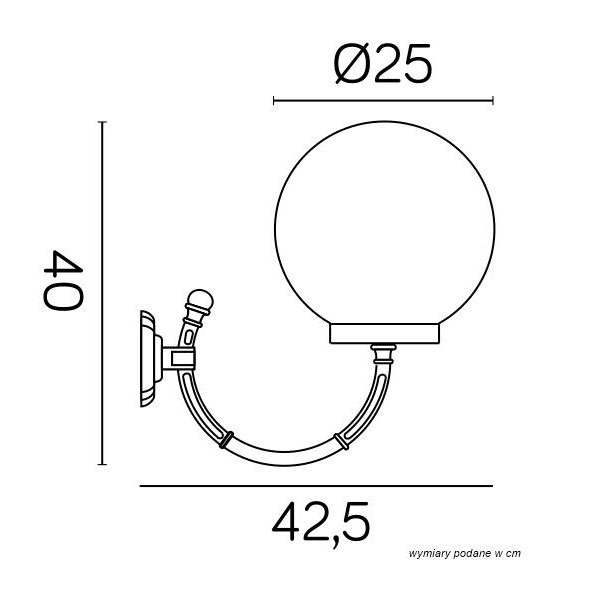 Kinkiet ogrodowy czarny dymiona kula KULE CLASSIC K 3012/1/K 250P