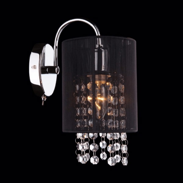 PAULO Kinkiet kryształowy z czarnym abażyrm wyłącznik 1188