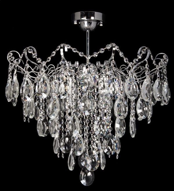 Elementy metalowe w kolorze błyszczącego chromu. Kryształ przeźroczysty.