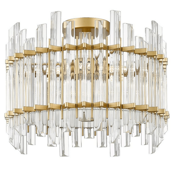 Armatura wykonana jest z metalu z kolorze złotym. Lampę zdobią kryształki.