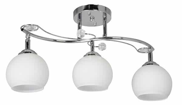 Konstrukcja w kolorze błyszczącego chromu. Klosze szklane mleczne.