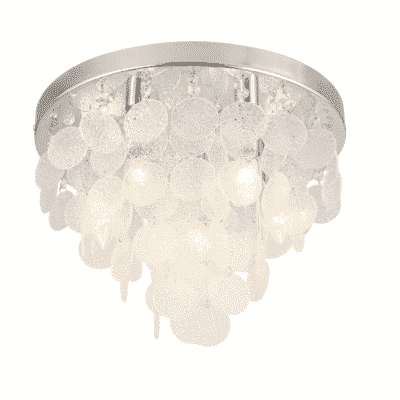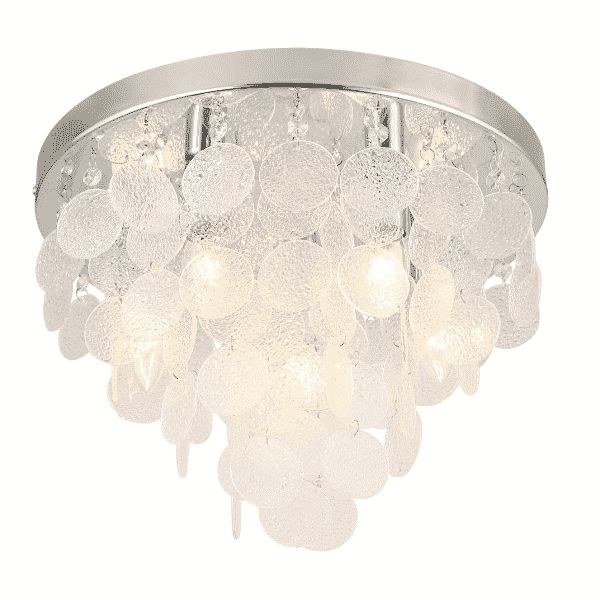 Konstrukcja lampy wykonana z metalu w kolorze chromu. Kryształy szklane przeźroczyste.