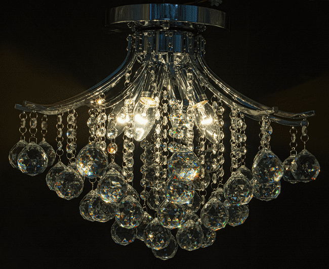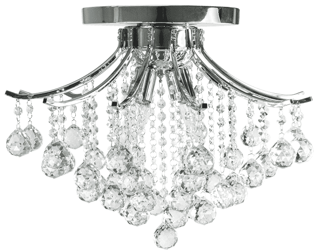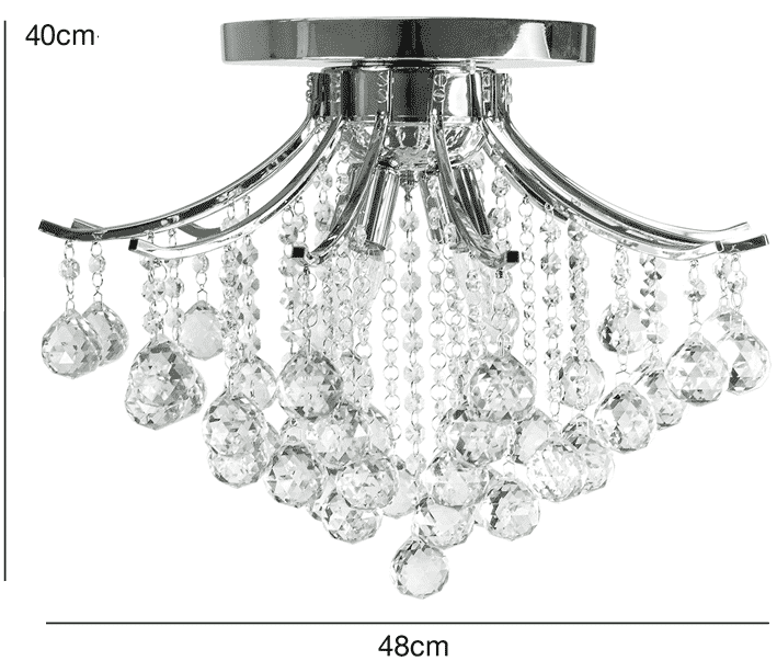 Konstrukcja lampy wykonana z metalu w kolorze chromu. Kryształki szklane.