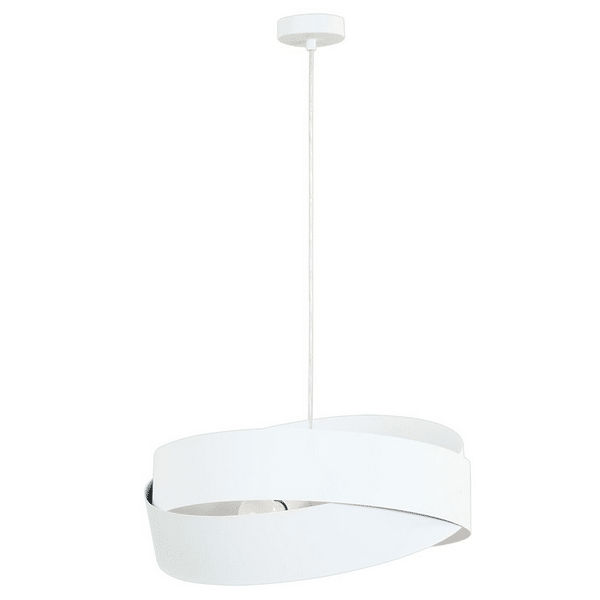 Lampa wisząca. Konstrukcja metalowa w kolorze białym.