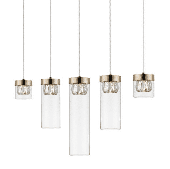 Lampa wisząca 5 punkt długa złota zwis GEM P0389-05E-F7AC