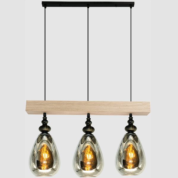 Lampa wisząca czarna drewniana 3 punktowa loft MOKKA 2045/3 WD