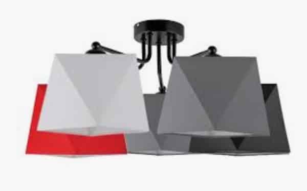 Konstrukcja w kolorze czarnym, abażury w kolorze czerwonym, szarym, białym i czarnym.