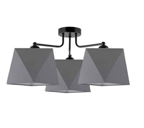 Konstrukcja w kolorze czarnym, abażury szare.