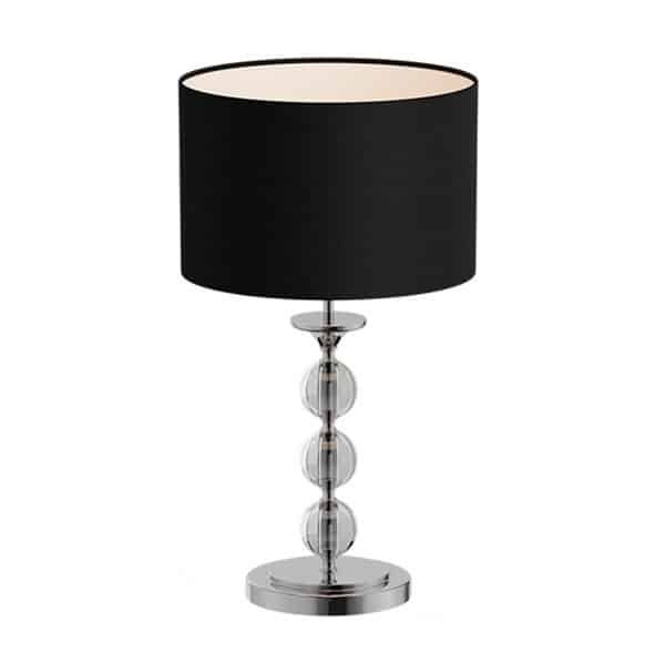 Konstrukcja w kolorze chromu, klosz czarny, szkło przeźroczyste.
