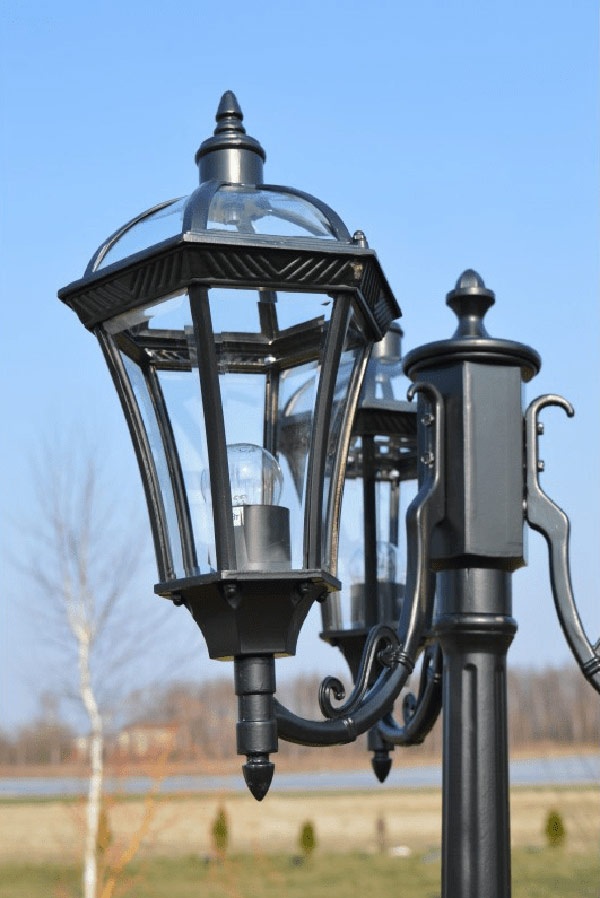 Latarnia ogrodowa. Konstrukcja wykonana z metalu w kolorze czarnym. Klosz szklany . Odporny na korozję.