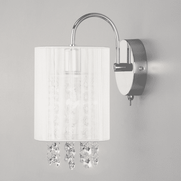 PAULO Kinkiet kryształowy z białym abażurem wyłącznik 1188