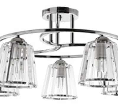 Konstrukcja lampy wykonana z metalu w kolorze chromu. Klosz szklany.
