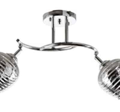 Konstrukcja lampy wykonana z metalu w kolorze chromu. Klosz szklany.