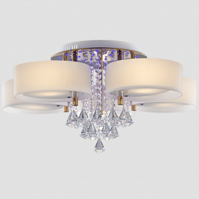 Konstrukcja lampy wykonana z metalu w kolorze złota. Klosz akrylowy biały, wewnątrz żarówka przesłonięta szkłem. Lampa przyozdobiona kryształami.