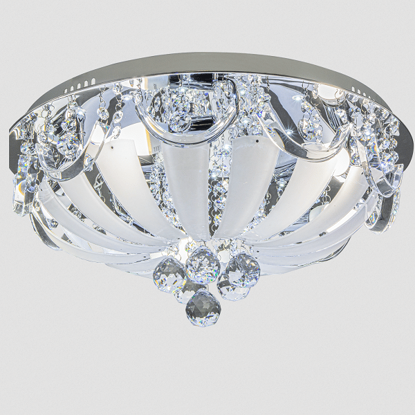 Konstrukcja lampy wykonana z metalu w kolorze chrom. Lampa przyozdobiona kryształami.