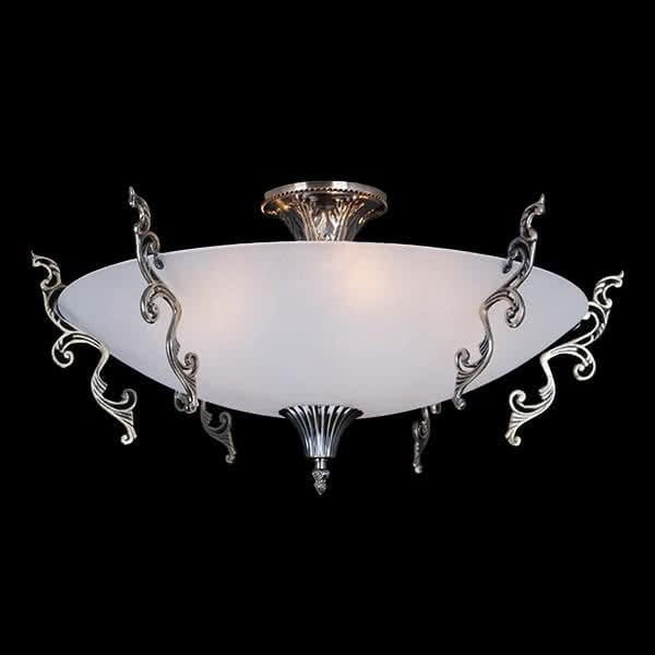 Konstrukcja w kolorze starego złota/mosiądzu. Klosz szklany mleczny.